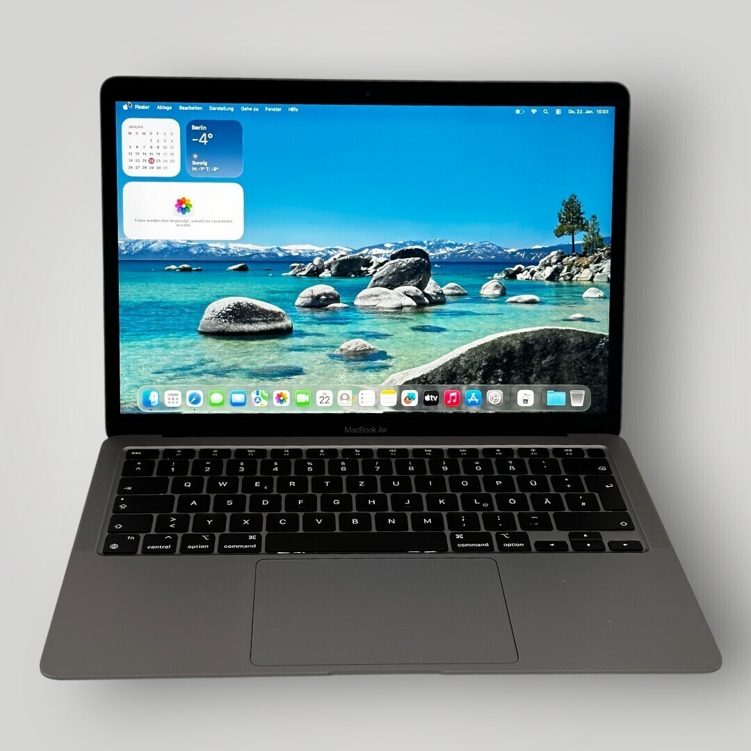 MacBook Air 13" M1 (A2337) – Grau. Kein Netzteil enthalten. Speicher:256 GB SSD. Die auf den Batterien abgebildeten Symbole haben folgende Bedeutung Farbe:Grau (Space Grey). Modell:MacBook Air 13". Das Symbol der durchgekreuzten Mülltonne bedeutet, dass die Batterie nicht in den Hausmüll gegeben werden darf.