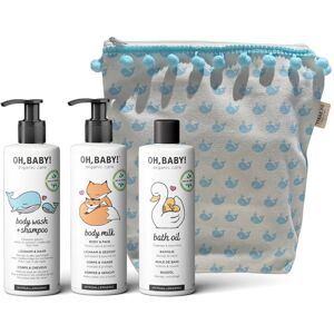 Oh, Baby! Gift Set Auf der Suche nach dem perfekten Geschenk? Das Oh Baby! Body Wash & Shampoo, Badeöl und Körpermilch sind in einem wunderschönen Kulturbeutel aus Leinen mit verspieltem Bommel verpackt. Sie erhalten den Kulturbeutel gratis! Dieses Set enthält 3 Bio-Babypflegeprodukte, die für die tägliche Pflege Ihres Babys von Geburt an benötigt werden. Großartig als aufmerksames Geschenk oder um Ihr eigenes Baby damit zu verwöhnen. Set bestehend aus: Duschgel & Shampoo 250ml Badeöl 250ml Körpermilch 250ml Kostenloser Kulturbeutel Anwendung: Body Wash & Shampoo : Auf feuchte Haut und Haare auftragen, sanft aufschäumen und gründlich ausspülen. Badeöl : Gießen Sie ein wenig Badeöl in das Wasser und mischen Sie es gut. Sie können das Öl auch verwenden, um Ihr Baby zu massieren, auf trockene Stellen aufzutragen oder Milchschorf zu behandeln. Körpermilch: Auf den gesamten Körper und das Gesicht auftragen und sanft einmassieren Inhaltsstoffe: Duschgel & Shampoo : Wasser, Dinatriumcocoylglutamat, Cocoglucosid, Glycerin, Natriumcocoylglutamat, Akaziengummi, Aloe-Barbadensis-Blattextrakt, Inulin, Alpha-Glucan-Oligosaccarid, Bacillus-Ferment-Lysat, Xanthangummi, Lecithin, Milchsäure, Kalium Sorbat, Natriumbenzoat, Parfum, Linalool*. Badeöl : Helianthus Annuus (Sonnenblumen)-Samenöl, Coco-Caprylat/Caprat, Glycerin, Glycerylcitrat/Lactat/Linoleat/Oleat, Glycerylcaprylat, Polyglyceryl-4-Cocoat, Polyglyceryl-3-Caprat, Tocopherol, Polyglyceryl-4-Laurat/Sebacat, Polyglyceryl-6 Caprylate/Caprate, Aqua, Parfum, Linalool*. Körpermilch: Aqua, Helianthus Annuus (Sonnenblumen)-Samenöl, Coco-Caprylate/Caprate, Caprylic/Capric Triglyceride, Cetearyl Alcohol, Glyceryl Stearate, Sodium Stearoyl Lactylate, Squalane, Glycerin, Ricinus Communis (Ricinus) Seed Oil, Inulin, Alpha- Glucan-Oligosaccaride, Copernicia Cerifera (Carnauba)-Wachs, Bacillus-Ferment-Lysat, Benzylalkohol, Dehydroessigsäure, Xanthangummi, Benzoesäure, Tocopherol, Milchsäure, Kaliumsorbat, Natriumbenzoat, Parfum, Limonene*, Linalool* * Aus natürlichen ätherischen Ölen aus kontrolliert biologischem Anbau
