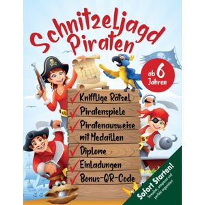 Binding : paperback, Label : Piraten Schnitzeljagd Kindergeburtstag ab 6 Jahren : Arrrr ihr Landratten! Startet ins spannende Abenteuer mit Pirat Parrot. Mit Piratenausweis, Medaillen & allen Materialien., medium : paperback, publicationDate : 2023-01-10, languages : german