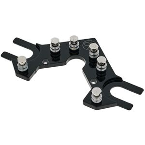 Dietrich Parts String Butler V4 Full Black Oversized Headstock, Hardware zur Verbesserung der Stimmstabilität bei E- und Western-Gitarren, konzipiert für Gitarren mit 3L/3R Mechaniken auf übergroßer Kopfplatte, korrigiert die Position der E, A, D, G, H, E Saite zu einem gradlinigen Verlauf durch die Sattelkerben und verhindert so ein Steckenbleiben der Gitarrensaiten im Sattel, macht betroffene Instrumente insgesamt stimmstabiler und sustainreicher, hält die Stimmung der Saiten auch bei sehr intensivem Gitarrenspiel (verkraftet auch extreme Bendings), schnelle und rückstandslose Montage, Ausführung V4 mit minimum Lochabstand 57mm / maximum Lochabstand 78mm, nicht kompatibel mit Mechaniken mit Einschlaghülsen/Steckhülsen, Farbe komplett Schwarz.