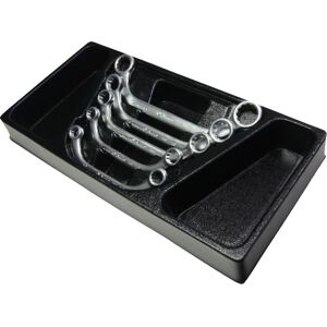 Anzahl Einsätze/Schubladen: 1+1+1 [3] / 1; G+F; type F. Anzahl der Werkzeuge: 5. Einsatztyp: Kunststoff. Einsätze Größe [mm]: 190x380. Hersteller: HANS. Herstellernummer: TT-36. Index: TT-36. Schlüsselgröße [mm]: 10x12; 11x13; 14x17; 16x18; 19x22. Werkzeugtyp: Ringschlüssel verbogen.