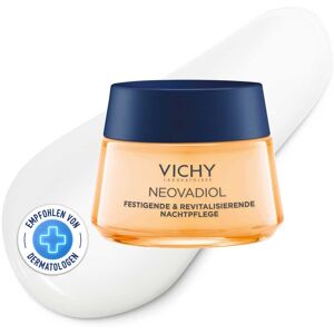 Anwendungsgebiet von VICHY Neovadiol NachtVICHY Neovadiol Nacht reaktiviert die Haut während der Wechseljahre: Für redefinierte Konturen und erholte Gesichtszüge. Mit kühlendem Effekt.Wirkungsweise von VICHY Neovadiol NachtIn den Wechseljahren beschleunigen hormonelle Schwankungen die Hautalterung und verstärken Festigkeits- und Konturenverlust, wodurch die Haut an Elastizität und Volumen verliert. Zusätzlich können Hitzewallungen auftreten und dazu führen, dass sich die Haut wärmer anfühlt. Die NEOVADIOL Festigende & revitalisierende Nachtpflege für die Haut in den Wechseljahren redefiniert die Konturen und regeneriert die Haut. Die Anti-Falten-Nachtpflege hinterlässt außerdem ein angenehm kühlendes Gefühl auf der Haut. Die Formel ist mit Proxylane, Cassia-Extrakt und Hyaluron angereichert. Sie mildert die sichtbaren Anzeichen der Wechseljahre auf der Haut und ist für empfindliche Haut geeignet.Wirkstoffe / Inhaltsstoffe / ZutatenVICHY Neovadiol Nacht enthält: Aqua / Water / Eau,Alcohol Denat.,Glycerin,Prunus Armeniaca Kernel Oil / Apricot Kernel Oil,Niacinamide,Dimethicone,Hydroxypropyl Tetrahydropyrantriol,Propanediol,Propylene Glycol,Isononyl Isononanoate,Zea Mays Starch / Corn Starch,Silica Silylate,Poloxamer 338,Hydroxyethylpiperazine Ethane Sulfonic Acid,Octyldodecanol,Dimethiconol,Caffeine,Sodium Acrylates Crosspolymer-2,Sodium Hyaluronate,Silica,Perlite,Adenosine,Ammonium Polyacryloyldimethyl Taurate,Ammonium Acryloyldimethyltaurate/Steareth-25 Methacrylate Crosspolymer,Caprylyl Glycol,Capryloyl Salicylic Acid,Laureth-7,Citric Acid,Cassia Angustifolia Seed Polysaccharide,Trisodium Ethylenediamine Disuccinate,Menthoxypropanediol,Pentaerythrityl Tetra-Di-T-Butyl Hydroxyhydrocinnamate,Polyacrylamide,C13-14 Isoparaffin,Parfum / FragranceGegenanzeigenBei bekannter Überempfindlichkeit gegenüber einen der oben genannten Inhaltsstoffe sollte das Produkt nicht angewendet werden.DosierungAnwendungsempfehlung von VICHY Neovadiol Nacht: