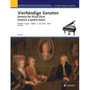 Brand : Schott Music, Binding : paperback, Label : Vierhändige Sonaten : Mozart / Haydn / J.Chr. Bach / Häßler / Wolf. Klavier 4-händig. (Schott Piano Classics), PackageQuantity : 1, Feature : Seiten : 72, medium : paperback, numberOfPages : 72, publicationDate : 1981-03-06, languages : english, ISBN : 3795752744