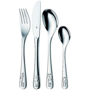 Auf geht’s in die Safari-Welt mit Krokodil, Zebra und Giraffe. Wie gemacht für alle kleinen Abenteurer, setzen die liebenswerten Motive die lebhafte Fantasie von Kindern in Gang und entführen sie in eine aufregende Welt voller Abenteuer. Das 4-teilige WMF Kinderbesteck-Set Safari für Kinder ab 3 Jahren besteht aus Kindergabel, Kindermesser, Kinderlöffel und kleinem Kinderlöffel mit abenteuerlichen Bildwelten. Die Formgebung des Kinderbestecks hilft die feinmotorischen Fähigkeiten der Kleinen weiterzuentwickeln und fördert dabei die Selbständigkeit beim Essen. Damit dabei nichts passieren kann, ist das Messer mit einem sanften Wellenschliff versehen, die Gabelzinken sind ungefährlich kurz und statt sonst üblicher Ecken und Kanten, sind diese überall kindgerecht abgerundet.