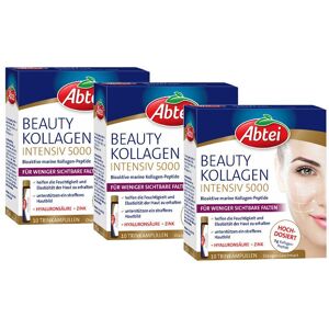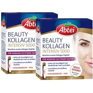 Anwendungsgebiet von Abtei Beauty Kollagen Intensiv 5000 TrinkampullenAbtei Beauty Kollagen Intensiv 5000 Trinkampullen kombinieren hochdosierte, bioaktive marine Kollagen-Peptide mit Hyaluronsäure, Vitamin C und Zink. Die besondere Formel unterstützt die Festigkeit der Haut von innen heraus und somit ein jüngeres Erscheinungsbild. Wirkungsweise von Abtei Beauty Kollagen Intensiv 5000 TrinkampullenWirkstoffe / Inhaltsstoffe / ZutatenZutaten von Abtei Beauty Kollagen Intensiv 5000 Trinkampullen:Wasser, marine Kollagen-Peptide 18.2% (Fisch) natürliches Aroma Säuerungsmittel Milchsäure L-Ascorbinsäure Zinkgluconat Konservierungsstoff Kaliumsorbat DL-Alpha-Tocopherylacetate Nicotinamid Natriumhyaluronat Süßungsmittel Steviolglycoside, Sucralose Riboflavin.Inhaltsstoffe pro Trinkampulle **NRV%Vitamin E 10 mg a-TE 83%Vitamin C 100 mg 125 %Riboflavin 2 mg 143 %Niacin 10 mg NE 63 %Zink 5 mg 50 %marine Kollagen-Peptide 5000 mg ***Hyaluronsäure 10 mg ***** Referenzmenge nach EU-Lebensmittelinformationsverordnung*** keine Referenzmenge vorhandenGegenanzeigenBei Überempfindlichkeit gegenüber einem der oben genannten Inhaltsstoffe sollte das Produkt nicht angewendet werden.DosierungVerzehrempfehlung von Abtei Beauty Kollagen Intensiv 5000 Trinkampullen:Täglich 1 Ampulle trinken. Vor dem Verzehr gut schütteln.InformationAbtei Beauty Kollagen Intensiv 5000 Trinkampullen enthalten mit Kollagen einen wichtigen Strukturbestandteil der Haut. Mit zunehmendem Alter nimmt die Kollagenproduktion ab. Erste Anzeichen der Hautalterung werden sichtbar. Die Haut verliert an Spannung und Elastizität und neigt zur Faltenbildung. Jetzt ist sie zunehmend auf Unterstützung angewiesen.Abtei Beauty Kollagen Intensiv 5000 Trinkampullen – Schönheit zum Trinken:Marine Kollagen-Peptide unterstützen den Erhalt der Hautelastizität und leisten einen Beitrag für weniger sichtbare Falten und ein strafferes Hautbild.Vitamin C trägt zu einer normalen Kollagenbildun