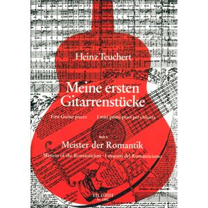 Ricordi Meine ersten Gitarrenstücke 4 – Meister der Romantik: 14 Solostücke aus der Romantik für Gitarre, herausgegeben von Heinz Teuchert, in Standardnotation, mit Fingersätzen, leichter Schwierigkeitsgrad, ISBN 9783931788346, ISMN 9790204222025, SY 2202, 21 x 30 cm, 20 Seiten