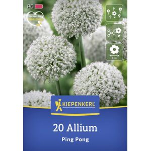 Kiepenkerl Herbstblumenzwiebel Zierlauch Ping Pong 20 Stück Produktnummer: 0693205245 Die dich besetzten weißen Blütenbälle des Zierlauchs 'Ping Pong' sind an sich schon eine faszinierende Erscheinung. Dass sie zudem auf ca. 100 cm hohen Stängeln thronen, lässt sie noch eindrucksvoller erscheinen. Die Blütenbälle setzen sich aus vielen kleinen Einzelblüten zusammen, welche Insekten auf Nahrungssuche in Scharen anlocken. In Staudenbeeten, die sonnig oder halbschattig gelegen sind, fühlt sich 'Ping Pong' am wohlsten. Er eignet sich ausgezeichnet für die Verwilderung und auch als kreative Schnittblume. Pflanzzeit: September - Dezember Standort: sonnig - halbschattig Blütezeit: Mai, Juni Lebensdauer: mehrjährig Pflanzabstand: 10 cm Pflanztiefe: 10 cm Wuchshöhe: 90 cm Botanischer Name: Allium ampeloprasum Schnittblume: ja winterhart Inhalt: 20 Stück