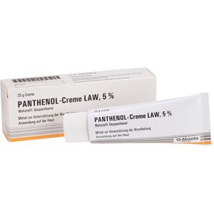 Anwendungsgebiet von Panthenol-Creme LAW 5%Panthenol (bzw. Dexpanthenol) wird seit vielen Jahrzehnten mit großem Erfolg bei unterschiedlichen Irritationen der Haut angewendet und ist den meisten als Wirkstoff aus Wund- und Heilsalben sowie Cremes bekannt. Zu solchen Irritationen zählen kleinere Schürf- und Schnittwunden sowie leichte Entzündungen oder auch Verbrennungen. In der Haut wird Panthenol in wirksame Pantothensäure umgewandelt, wodurch die natürliche Regenerierung beschleunigt und die Stabilität der Hautbarriere schneller wieder hergestellt wird. Panthenol unterstützt somit die natürlichen Heilungsprozesse und trägt aktiv dazu bei, eine Narbenbildung zu verringern. Panthenol-Creme sollte ein bis mehrmals täglich dünn auf die betroffenen Haustellen aufgetragen werden. Sie ist vegan und kann auch zur Tattoo-Nachsorge eingesetzt werden.