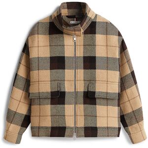 Damen Jacke aus recycelter Wolle Stehkragen Schließt mit Zwei-Wege-Reißverschluss Langarm mit Manschetten Eingrifftaschen mit Patten Karomuster Gerade Passform Farbbezeichnung: Brown Material: 72% recycelte Wolle, 25% Polyamid, 3% recycelter Kaschmir