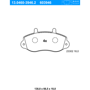 ATE Bremsbelagsatz, Scheibenbremse test_mark_190: Prüfzeichen: E1 90R-01291/074 Artikelnummer des empfohlenen Zubehörs: 13.0460-0160.2 Artikelnummer des empfohlenen Zubehörs: 13.0460-0158.2 Dicke/Stärke: 18 mm Artikelnummer des empfohlenen Zubehörs: 24.8190-0401.2 MAPP-Code vorhanden Artikelnummer des empfohlenen Zubehörs: 24.8190-0406.2 Verschleißwarnkontakt: für Verschleißwarnanzeiger vorbereitet Abmessungen beachten Verschleißwarnkontakt: exkl. Verschleißwarnkontakt Bremssystem: ATE Höhe: 75 mm Breite: 149 mm Menge 1 entspricht einem Satz (4 Bremsbeläge für links UND rechts) , u.a. für Mercedes-Benz G-Klasse (W460), 2298 cm³, 122 PS (90 kW), 5/1987 bis 8/1992, KBA-Nr: 0708395Mercedes-Benz G-Klasse (W460), 2299 cm³, 125 PS (92 kW), 4/1982 bis 8/1992, KBA-Nr: 0708394Mercedes-Benz G-Klasse (W460), 2307 cm³, 90 PS (66 kW), 3/1979 bis 7/1993, KBA-Nr: 0709356Mercedes-Benz G-Klasse (W460), 2746 cm³, 150 PS (110 kW), 8/1984 bis 8/1989, KBA-Nr: 0708393Mercedes-Benz G-Klasse (W460), 2746 cm³, 156 PS (115 kW), 11/1979 bis 8/1989, KBA-Nr: 0709359Mercedes-Benz G-Klasse (W463), 3449 cm³, 136 PS (100 kW), 9/1991 bis 8/1996, KBA-Nr: 0708435Mercedes-Benz G-Klasse (W460), 2399 cm³, 72 PS (53 kW), 3/1979 bis 8/1987, KBA-Nr: 0709362Mercedes-Benz G-Klasse (W460), 2998 cm³, 88 PS (65 kW), 12/1979 bis 12/1991, KBA-Nr: 0708390Mercedes-Benz T1 (601, 611), 2298 cm³, 105 PS (77 kW), 5/1989 bis 2/1996, KBA-Nr: 0708049Mercedes-Benz T1 (601, 611), 2299 cm³, 79 PS (58 kW), 11/1988 bis 2/1996, KBA-Nr: 0708087Mercedes-Benz T1 (601, 611), 2299 cm³, 82 PS (60 kW), 10/1988 bis 2/1996, KBA-Nr: 0708088Mercedes-Benz T1 (602), 2299 cm³, 79 PS (58 kW), 6/1989 bis 2/1996, KBA-Nr: 0708081Mercedes-Benz T1 (601), 2299 cm³, 82 PS (60 kW), 6/1989 bis 2/1996, KBA-Nr: 0708090Mercedes-Benz T1 (601, 611), 2874 cm³, 95 PS (70 kW), 10/1988 bis 2/1996, KBA-Nr: 0708083Mercedes-Benz T1 (601, 611), 2874 cm³, 98 PS (72 kW), 10/1988 bis 2/1996, KBA-Nr: 0708084Mercedes-Benz T1 (601), 2874 cm³, 95 PS (70 kW), 11/1988 bis 2/1996, KBA-Nr: 0708085Mercedes-Benz T1 (602), 2874 cm³, 98 PS (72 kW), 6/1989 bis 2/1996, KBA-Nr: 0708008Mercedes-Benz T1 (601), 2298 cm³, 95 PS (70 kW), 7/1982 bis 1/1990, KBA-Nr: 0709360Mercedes-Benz T1 (601), 2307 cm³, 86 PS (63 kW), 5/1977 bis 12/1982, KBA-Nr: 0009450Mercedes-Benz T1 (601), 2298 cm³, 105 PS (77 kW), 5/1989 bis 2/1996, KBA-Nr: 0708403Mercedes-Benz T1 (601), 2299 cm³, 79 PS (58 kW), 10/1988 bis 2/1996, KBA-Nr: 0708399Mercedes-Benz T1 (601), 2299 cm³, 82 PS (60 kW), 10/1988 bis 2/1996, KBA-Nr: 0708400Mercedes-Benz T1 (602), 2299 cm³, 79 PS (58 kW), 11/1988 bis 2/1996, KBA-Nr: 0708091Mercedes-Benz T1 (602), 2299 cm³, 82 PS (60 kW), 6/1989 bis 2/1996, KBA-Nr: 0708411Mercedes-Benz T1 (601), 2404 cm³, 65 PS (48 kW), 5/1977 bis 12/1982, KBA-Nr: 0009452Mercedes-Benz T1 (601), 2874 cm³, 95 PS (70 kW), 11/1988 bis 2/1996, KBA-Nr: 0708401Mercedes-Benz T1 (601), 2874 cm³, 98 PS (72 kW), 11/1988 bis 2/1996, KBA-Nr: 0708402Mercedes-Benz T1 (602), 2874 cm³, 95 PS (70 kW), 6/1989...