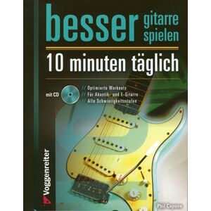 Voggenreiter Besser Gitarre spielen – 10 Minuten täglich: Übungsbuch für Gitarre, von Phil Capone, für Akustik- und E-Gitarre, ansteigender Schwierigkeitsgrad, ISBN 9783802410536, VOGG 1053-6, 19 x 23 cm, Spiralbindung, 224 Seiten, inkl. CD mit Demo- und Play-Along-Versionen, in deutscher Sprache