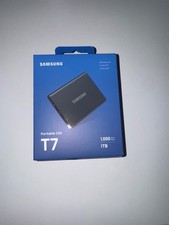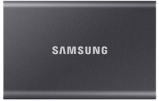 Samsung SSD T7 1TB Titan Grey USB-C; kompakte, externe SSD; bis zu 1TB Speicherkapazität; Lesegeschwindigkeit zu bis zu 1.050 MB/s, Schreibgeschwindigkeit bis zu 1.000 MB/s; Passwortschutz auf Basis von AES 256-Bit-Hardwareverschlüsselung; Aluminium-Gehäuse; USB 3.2; Anschluss: USB-C; inkl. USB-Kabel Typ-C auf C und Typ-C auf A zur Verbindung zu PCs, Macs, Android-Geräten, iPhone 15, Smart TVs und Spielekonsolen; Abmessungen: 85 x 57 x 8 mm (BxHxT); Gewicht: 72g