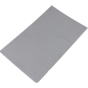 Nicht nur die Katzentoilette sollte häufig gereinigt werden, auch in der Umgebung gilt es, auf Hygiene zu achten. Der Katzentoilettenvorleger Trap-it! sorgt für mehr Sauberkeit in der Wohnung, da seine strukturierte Oberfläche Streu von den Katzenpfoten ablöst und somit verhindert, dass die Krümel in der Wohnung verteilt werden. Der Vorleger fürs Katzenklo besteht aus einer doppellagigen Matte. Die Streu gelangt durch die Poren der oberen Schicht in die Auffangmatte. Die gesammelte Streu kann durch die seitliche Öffnung einfach zurück in die Katzentoilette geschüttet oder in den Mülleimer befördert werden. Die Oberfläche des Vorlegers ist angenehm weich und pfotenfreundlich. Die Unterseite ist wasserdicht. Optimal geeignet ist der Pfotenabstreicher bei Verwendung von feinen Streuarten und Sandstreu. Katzentoilettenvorleger Trap-it! im Überblick: Vorleger für die Katzentoilette Geeignet für alle feinen Streuarten und für Sandstreu Strukturierte Oberfläche: streift Streu von Katzenpfoten, hilft die Wohnung sauber zu halten Doppellagige Matte fängt Streu zuverlässig auf: leitet lose Streu durch die Poren der oberen Lage auf die Auffangmatte Einfache Reinigung: Matte einfach seitlich öffnen, aufgefangene Streu zurück in die Katzentoilette oder in den Mülleimer befördern Abwaschbar: unter fließendem Wasser reinigen Wasserdichte Unterseite Besonders hygienisch: reduziert lose und verschmutzte Einstreu außerhalb der Katzentoilette, sorgt für saubere Pfoten Pfotenfreundlich: angenehm weiche Oberfläche, ideal für empfindliche Katzenpfoten Farbe: grau Material: 100% Kunststoff Maße: Gesamt: L 77 x B 46,5 cm Öffnungen: ca. 3 x 3 mm