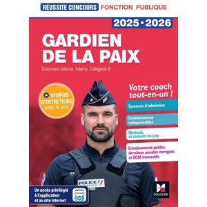 Binding : paperback, Label : Réussite Concours - Gardien de la paix - 2025-2026- Préparation complète : Concours externe, interne, Catégorie B, Format : big_book, medium : paperback, numberOfPages : 304, publicationDate : 2025-01-22, languages : french, ISBN : 2216175633