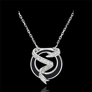 Ein edler Goldkranz, welcher mit elegantem Lack in schwarz gefüllt und einem diamantbesetzten Band geziert wird - Eleganz in ihrer reinsten Form.Mit Kette 42 cm + Verlängerung von 3 cm; 750/-. 16 Diamanten : 0.11 Karat - Weißgold (750/-): 3.6 g.