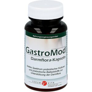 Anwendungsgebiet von Gastromod Probiotika-kapselnGastromod Probiotika-kapseln ist ein Nahrungsergänzungsmittel - Spektrum probiotischer Kulturen und prebiotischer Ballaststoffe zur Unterstützung der Darmflora. Die Kapseln sind magensaftresistent und enthalten keine Gelatine. Gastromod Probiotika-kapseln ist frei von tierischen Bestandteilen und damit für Vegetarier und Veganer geeignet Wirkungsweise von Gastromod Probiotika-kapselnGastromod Probiotika-kapseln enthält nicht nur eine, sondern eine Vielzahl verschiedener probiotischer Kulturen mit breiten Funktionsspektrum. Durch eine spezielle Cellulose-Kapsel sind sie vor Magensäure geschützt. Die zusätzlich enthaltenen prebiotischen Ballaststoffe sind ebenfalls sehr günstig für eine ausgewogene Darmflora.Wirkstoffe / Inhaltsstoffe / ZutatenZutaten: von Gastromod Probiotika-kapseln: Inulin, Oligofructose, Kapselhülle: Hydroxypropyl-methyl-cellulose, Mischung probiotischer Bakterienkulturen (Trägerstoff: Maltodextrin), Lactobacillusbulgaricus, Bifidobacterium bifidum, Bifidobac-terium infantis, Bifidobacterium longum, Bifidobacterium breve, Bifidobacterium lactis, Lactobacillus rhamnosus, Lactobacillus acidophilus, Lactobacillus casei, Streptococcus thermophilus, Lactobacillus plantarum, Lactobacillus salivarius, Lactobacillus paracasei) Trennmittel: Magnesiumsalze von Speisefettsäuren GegenanzeigenBei bekannter Überempfindlichkeit gegen einen der Inhaltsstoffe sollte dieses Produkt nicht angewendet werden.DosierungAnwendungsempfehlung des Gastromod Probiotika-kapseln: 1 bis 2 Kapsel von Gastromod Probiotika-kapseln täglich mit etwas Flüssigkeit einnehmen.HinweiseDie angegebene empfohlene tägliche Verzehrsmenge darf nicht überschritten werden. Nahrungsergänzungsmittel sollten nicht als Ersatz für eine ausgewogene und abwechslungsreiche Ernährung verwendet werden. Außerhalb der Reichweite von Kindern aufbewahren. Gastromod Pro