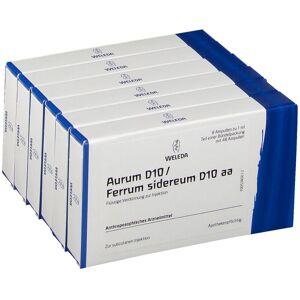 Was ist Aurum D10 / Ferrum sidereum D10 aa und wofür wird es angewendet? Aurum D10 / Ferrum sidereum D10 aa ist ein anthroposophisches Arzneimittel. Gemäß der anthroposopischen Menschen- und Naturerkenntnis gehört zu den Anwendungsgebieten die Anregung der Ich-geführten Willenstätigkeit durch Harmonisierung des Rhythmischen Systems bei psycho-physischen Versagenszuständen, z.B. Lampenfieber, Platzangst, Erschöpfung, depressive Verstimmung. Wie ist Aurum D10 / Ferrum sidereum D10 aa anzuwenden? Wenden Sie Aurum D10 / Ferrum sidereum D10 aa immer genau nach der Anweisung Ihres Arztes an. Falls vom Arzt nicht anders verordnet, ist die übliche Dosis: Erwachsene erhalten 2 mal wöchentlich bis 1 mal täglich 1 ml subcutan injiziert. Bitte beachten Sie die Anwendungshinweise. Die Dosierung für Kinder ab 6 Jahren wird vom behandelnden Arzt festgelegt. Die subcutane Injektion erfolgt in der Regel in den Oberschenkel oder die Oberarmaußenseite bzw. in die Bauchregion. Nach Säuberung der Einstichstelle (z.B. durch Abreiben mit 70%igem Alkohol) eine Hautfalte bilden und die Injektionsnadel schräg einstechen. Den Spritzenstempel leicht zurückziehen. Sollte Blut erscheinen, wurde ein Blutgefäß getroffen. Die Injektion in diesem Fall an einer anderen Stelle wiederholen. Wenn kein Blut erscheint, langsam injizieren, anschließend die Nadel herausziehen und auf die Einstichstelle kurz mit einem Tupfer drücken. Es wird in jedem Fall empfohlen, die Injektionstechnik durch eine darin erfahrene Person zu erlernen. Die Behandlung einer akuten Erkrankung sollte nach 2 Wochen abgeschlossen sein. Tritt innerhalb von 2 – 5 Tagen keine Besserung ein, ist ein Arzt aufzusuchen. Die Dauer der Behandlung von chronischen Krankheiten erfordert eine Absprache mit dem Arzt. Zusammensetzung: 1 Ampulle enthält: Wirkstoffe: Aurum metallicum praeparatum Dil. D10 aquos. 0,5 g / Ferrum sidereum Dil. D10 aquos. 0,5 g - letzte Stufe gemeinsam potenziert. Sonstiger Bestandteil: Natriumchlorid.