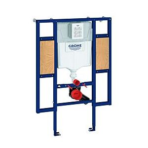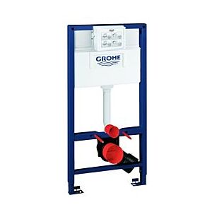 Grohe Rapid SL Wand WC Element 38897000Rapid SL für Wand-WCmit senkrechten Drucktraversen für WC- Becken mit einer Auflagefläche unter 20 cm Spülkasten GD 2 mit kleiner Revisionsöffnung 1,13 m Bauhöhe für Vorwand- oder Ständerwandmontage Stahlrahmen, pulverbeschichtet, selbsttragend für Trockenverkleidung, komplett vormontiert fixierte Objektanschlüsse für Einzel- oder Schienenmontage mit Schnellverstellung und Höhensicherung Befestigungsmaterial TÜV-geprüft 2 WC-Haltebolzen Keramikbefestigung Schraubenabstand 180/230 mm PP-Ablaufbogen DN 80 tiefenverstellbar Reduzierstück DN 80/100 Zu- und Ablaufgarnitur Spülkasten GD 2, 6 - 9 l werkseitige Einstellung 6l und 3l pneumatisches Ablaufventil mit drei Funktionen: 2 Mengen oder Start & Stopp oder nicht unterbrechbar Wasseranschluss von links/rechts/hinten Armaturengruppe I DIN geprüft schwitzwasserisoliert Wasseranschluss DN 15 mit integriertem Eckventil und werkzeugloser Schlauchverschraubung werkzeuglos montierbarer Revisionsschacht mit Rohbauschutz, vertikal oder horizontal einsetzbar ohne Zubehör für Vorwandmontage