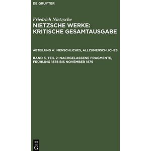 Brand : Gruyter, Walter de GmbH, Binding : Taschenbuch, Edition : 1, Label : de Gruyter, Publisher : de Gruyter, medium : Taschenbuch, numberOfPages : 416, publicationDate : 1989-12-01, releaseDate : 1989-12-01, authors : Friedrich Nietzsche, publishers : Giorgio Colli, Mazzino Montinari, Wolfgang Müller-Lauter, Karl Pestalozzi, ISBN : 3110051745
