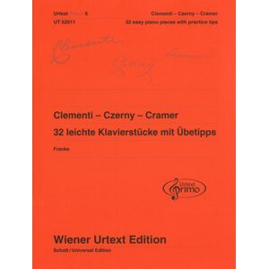 Wiener Urtext Edition Clementi – Czerny – Cramer: 32 Stücke von Muzio Clementi, Carl Czerny und Johann Baptist Cramer für Klavier, Urtext Primo 6, herausgegeben von Nils Frank, leichter Schwierigkeitsgrad, ISBN 9783850557719, ISMN 9790500573920, UT 52011, 23 x 30,5 cm, 64 Seiten