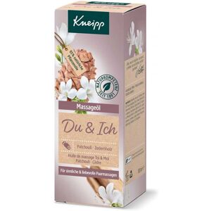 Anwendungsgebiet von Kneipp Massageöl Du & IchDas Kneipp® Massageöl Du & Ich mit natürlichem ätherischem Patchouli- und Zedernholzöl schenkt wohltuende Zweisamkeit und gemeinsame Momente der Entspannung.Feuchtigkeitsregulierende und intensiv pflegende Pflanzenöle und zellschützendes Vitamin E hinterlassen ein angenehm weiches und geschmeidiges Hautgefühl.Das Kneipp® Massageöl Du & Ich lässt sich leicht verteilen, zieht langsam ein und verströmt seinen sinnlich-pudrigen Duft durch die freigesetzte Wärme bei der Massage besonders intensiv. Pflanzeninformation zu Patchouliöl:Der besondere Duft des Patchouliöls wirkt harmonisierend, beruhigend und ausgleichend auf Körper und Seele.Pflanzeninformation zu Zedernholz:Zedernholz ist für seinen warmen, beruhigenden und auch aphrodisierenden Duft bekannt.Pflanzeninformation zu Sonnenblumenöl:Sonnenblumenöl wird in Hautpflegeprodukten aufgrund seiner hervorragenden pflegenden Eigenschaften sowie der sehr guten Verträglichkeit eingesetzt.Wirkstoffe / Inhaltsstoffe / ZutatenHelianthus Annuus (Sunflower) Seed Oil, Prunus Amygdalus Dulcis (Sweet Almond) Oil, Simmondsia Chinensis (Jojoba) Seed Oil, Tocopheryl Acetate, Pogostemon Cablin Leaf Oil, Juniperus Mexicana Wood Oil, Alpha-Isomethyl Ionone, Coumarin, Limonene, Linalool, Parfum (Fragrance), Glycine Soja (Soybean) Oil, Tocopherol.DosierungDünn auftragen, mit sanftem Druck und gleichmäßig kreisenden Bewegungen einmassieren. Als Hautöl angewendet empfehlen wir die Verwendung direkt nach dem Duschen oder Baden auf der noch feuchten Haut. Unser Massageöl ist zur Intimmassage geeignet. Kneipp Massageöl Du & Ich können in Ihrer Versandapotheke www.juvalis.de erworben werden.