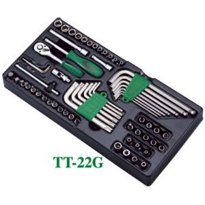Anzahl Einsätze/Schubladen: 1+1+1 [3] / 1; G+F; type F. Anzahl der Werkzeuge: 50. Buchsengröße [Zoll]: 1/2; 1/4. Einsatztyp: Kunststoff. Einsätze Größe [mm]: 190x380. HEX Größe [mm]: 10; 2,5; 3; 4; 5; 6; 8. Hersteller: HANS. Herstellernummer: TT-1G. Index: TT-1G. Kappengröße [mm]: 4; 4,5; 5; 6; 7; 8; 9; 10; 11; 12; 13. Metergröße [mm]: 1,5; 2; 4; 5,5; 7. POZIDRIV Größe: PZ1; PZ2. Philips Größe : PH1; PH2. Profil: Flach, Philips PH, TORX, TORX TAMPER. TORX Größe: T40, T45, T55, T70. TORX TAMPER Größe: T25H, T30H, T40H, T45H, T50H, T55H. Werkzeugtyp: Buchse/Sechskant; Buchse/Stift (Bit) flach; Buchse/Stift (Bit) Philips PH; Buchse/Stift (HEX); Buchse/Stift (TORX); Erweiterung; Gelenk; HEX-Schlüssel; Knopf; Rassel; TORX TAMPER Schlüssel.