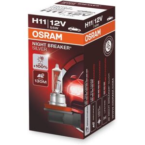OSRAM H11 Night Breaker Silver (1 Stk.) Nennleistung: 55: W Spannung: 12: V Lampenart: H11 Sockelausführung: PGJ19-2: Die OSRAM NIGHT BREAKER SILVER H11 überzeugt durch modernes Design und ist die perfekte Wahl für Fahrer mit hohen Ansprüchen an Performance und Lebensdauer. Mit bis zu 100 % mehr Helligkeit und einem 130 m langen Lichtkegel (im Vergleich zu den gesetzlichen Mindestanforderungen), erkennen Autofahrer mit NIGHT BREAKER SILVER Verkehrsschilder, Hindernisse und Gefahren früher als mit herkümmlichen Halogen-Scheinwerferlampen. Eigenschaften: Sockel: PGJ19-2 Spannung: 12 Volt Leistung: 55 Watt