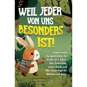 Binding : paperback, Label : Weil jeder von uns besonders ist! : Inspirierende Kurzgeschichten für Kinder ab 5 Jahren über Selbstliebe, innere Stärke und Mut. Kinderbuch für Mädchen und Jungs, medium : paperback, numberOfPages : 100, publicationDate : 2024-04-07, languages : german, ISBN : 3384194608