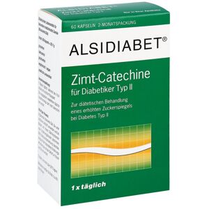 Anwendungsgebiet von Alsidiabet Zimt Catechine für Diab.Typ Ii KapselnAlsidiabet Zimt Catechine für Diab.Typ Ii Kapseln ist ein Lebensmittel für besondere medizinische Zwecke (bilanzierte Diät) mit 3,7% Catechinen. Bei Personen mit einem gestörten Zuckerstoffwechsel ist die Fähigkeit, Zucker aus dem Blut in die Zellen aufzunehmen, in der Regel eingeschränkt. Damit verbleibt mehr Zucker aus der täglichen Nahrung im Blut und erhöht so den Blutzuckerspiegel. Für Diabetiker Typ II ist es deshalb besonders wichtig, bei ihrer Ernährung auf den Blutzuckerspiegel zu achten. Eine klinische Studie mit ALSIDIABET® Zimt-Catechinen konnte zeigen, dass eine Ernährung mit besonderen Pflanzenstoffen aus der Rinde des Zimtbaumes (Catechine) in Kombination mit den Mikronährstoffen Niacin und Chrom ernährungs-physiologisch den Langzeitzuckerwert verbessert. Bei Personen mit einem erhöhten Blutzuckerspiegel liegt ein medizinisch bedingter Nährstoffbedarf vor, der über die normale Ernährung dauerhaft nicht gedeckt werden kann. ALSIDIABET® Zimt-Catechine enthält Catechine in standardisierter Form, Niacin und Chrom und eignet sich aufgrund seiner Eigenschaften und Merkmale zum Diätmanagement bei Diabetes Typ II mit einem erhöhten Blutzuckerspiegel.Wirkstoffe / Inhaltsstoffe / ZutatenZutaten von Alsidiabet Zimt Catechine für Diab.Typ Ii Kapseln: Zimtextrakt (enthält Maltodextrin) 71%, Kapselhülle Hydroxypropylmethylcellulose, Niacin, Chrom-III-chlorid, Trennmittel Magnesiumsalze der Speisefettsäuren. Nährwertangaben: pro Kapsel pro 100 g Brennwert 5 kJ (1 kcal) 1099 kJ (259 kcal) Fett < 0,5 g 0,8 g davon gesättigte Fettsäuren < 0,1 g 0,7 g Kohlenhydrate < 0,5 g 52 g davon Zucker < 0,5 g 7,9 g Eiweiß (Zimtextrakt) < 0,5 g 1,5 g Niacin 18 mg 3674 mg Chrom 60 μg 12245 μg Natrium < 1,0 mg < 1,0 mg Zimtextrakt 350 mg 71429 mg standardisiert auf oligomere Catechine 18 mg 36