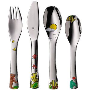 Der kleine Tiger und der kleine Bär, die Tigerente und natürlich Günter Kastenfrosch heißen die bunten Helden, die wir der Kreativität des großartigen Künstlers Janosch verdanken und die in den Herzen unzähliger Kinder einen festen Platz gefunden haben. Das 4-teilige WMF Kinderbesteck-Set Janosch bringt mit seinen farbenfrohen Dekoren Kinderaugen zum Leuchten. Das Set für Kinder ab 3 Jahren besteht aus Kindergabel,Kinderlöffel, Kindermesser und kleinem Kinderlöffel mit bezaubernden Bildwelten. Die Formgebung des Kinderbestecks hilft die feinmotorischen Fähigkeiten der Kleinen weiterzuentwickeln und fördert dabei die Selbständigkeit beim Essen. Damit dabei nichts passieren kann, ist das Messer mit einem sanften Wellenschliff versehen, die Gabelzinken sind ungefährlich kurz und statt sonst üblicher Ecken und Kanten, sind diese überall kindgerecht abgerundet. Eine hochwertige Geschenkverpackung gehört natürlich mit dazu - und selbst eine ganz persönliche, individuelle Gravur durch einen entsprechenden Fachbetrieb ist problemlos möglich. So erinnern wir uns auch als Erwachsene Jahrzehnte später noch liebevoll an unser erstes eigenes Besteck - und daran, wer es uns geschenkt hat.