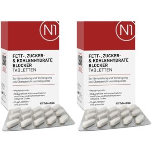 Für mehr Sättigungsgefühl damit du deine Portionsgrößen verkleinern kannst Zur Behandlung und Vorbeugung von Übergewicht Vegan, laktose- und glutenfrei Du möchtest effektiv und schnell abnehmen? Dann haben wir genau das Richtige für dich! Mit dem N1 Fett-, Zucker- und Kohlenhydrate Blocker erreichst du deine Abnehmziele auf einfache und effiziente Weise. Dieses vegane Medizinprodukt ermöglicht es dir, die Kalorienaufnahme aus Fetten und Kohlenhydraten inklusive Zucker zu reduzieren und unterstützen dich dabei, Adipositas und Übergewicht zu behandeln und vorzubeugen. Die Anwendung ist kinderleicht. Du nimmst einfach 3x täglich 2 Tabletten jeweils eine Stunde vor jeder Mahlzeit mit mindestens einem Glas Wasser ein. Die N1 Fett-, Zucker- und Kohlenhydrate Blocker Tabletten entfernen effektiv Zucker, Fette und Kohlenhydrate aus deiner Nahrung und sorgen dafür, dass diese aus deinem Körper ausgeschieden werden, ohne in deinen Stoffwechsel zu gelangen. Das bedeutet, dass du weniger Kalorien aufnimmst und somit deine Gewichtsabnahme unterstützt. Doch das ist nicht alles! Die N1 Tabletten bilden zudem eine Gelmatrix in deinem Magen, die ein angenehmes Sättigungsgefühl hervorruft und deinen Hunger verringert. Dadurch kannst du problemlos die Portionsgröße deiner Mahlzeiten reduzieren und dich schneller und länger satt fühlen. Mit dem N1 Fett-, Zucker- und Kohlenhydrate Blocker wird das Abnehmen zu einer stressfreien und genussvollen Erfahrung. Die Appetit Blocker Tabletten sind nicht nur effektiv, sondern auch vegan, laktose- und glutenfrei. Sie eignen sich somit für eine Vielzahl von Ernährungsbedürfnissen und -präferenzen. Du kannst sie bedenkenlos in deine tägliche Routine integrieren und deine Abnehmreise unterstützen. Wir möchten dich jedoch darauf hinweisen, dass die N1 Fett-, Zucker- & Kohlenhydrate Blocker Tabletten den Gehalt bestimmter Vitamine und Mineralstoffe, die vom Körper aufgenommen werden, verringern können. Daher empfehlen wir dir, zusätzlich jeden Tag ein Multivitaminpräparat einzunehmen. Hierfür bieten wir dir unsere N1 Multivitamine + Mineralstoffe Kapseln an, um eine optimale Versorgung sicherzustellen. Der N1 Fett-, Zucker- und Kohlenhydrate Blocker ist mehr als nur ein Fettblocker oder Fettverbrenner. Er unterstützt dich auf vielfältige Weise bei deiner Diät. Als Appetitzügler und Appetithemmer hilft er dir, ähnlich wie Diät Shakes zum Abnehmen aus dem Shaker, dabei, den Heißhunger und die Lust auf ungesunde Snacks zu kontrollieren. Als Kalorien Blocker reduziert er die Kalorienaufnahme und fördert somit die Gewichtsabnahme. Gleichzeitig unterstützt er deinen Stoffwechsel und fördert eine gesunde Entgiftungskur. Probiere den N1 Fett-, Zucker- und Kohlenhydrate Blocker aus und erlebe selbst, wie einfach und effektiv du abnehmen kannst. Bestelle noch heute und starte deinen Weg zu einer gesünderen und fitteren Version von dir selbst! Erreiche deine Abnehmziele mit dem N1 Fett-, Zucker- und Kohlenhydrate Blocker! Anwendung: Nimm...