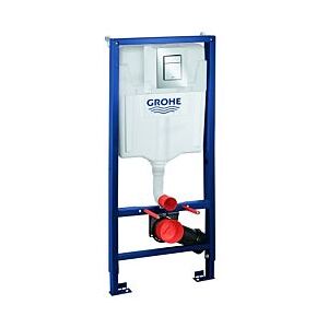 GROHE Wand-WC-Element Rapid SL 38528_1, Spülkasten GD 2, 1,13 m Bauhöhe, für Vorwand- oder Ständerwandmontage, 38528001 Rapid SL Element für WC, 1,13 m Bauhöhe für Vorwand- oder Ständerwandmontage Stahlrahmen komplett vormontiert mit Schnellverstellung und Höhensicherung Befestigungsmaterial, TÜV-geprüft 2 WC-Haltebolzen, Keramikbefestigung WCs mit Auflagefläche kleiner 205 mm erfordern Abstützungsset 38 779 Schraubenabstand 180/230 mm Ablaufbogen Ø 90 mm, tiefenverstellbar Reduzierstück Ø 90/110 mm, Zu- und Ablaufgarnitur Spülkasten GD 2, 6 - 9 l mit folgenden Funktionen: werkseitige Einstellung 6l und 3l pneumatisches Ablaufventil mit zwei Funktionen: 2 Mengen oder Start & Stopp Wasseranschluss von links/rechts/hinten Armaturengruppe I, schwitzwasserisoliert Wasseranschluss 1/2'' mit integriertem Eckventil und werkzeugloser Schlauchverschraubung werkzeuglos montierbarer Revisionsschacht mit Rohbauschutz Wandwinkel 38 558 00M für Vorwandmontage müssen separat bestellt werden Revisionsschacht 40 911 000 für kleine Abdeckplatten ist separat zu bestellen