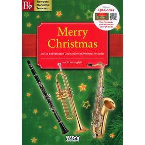 Hage Musikverlag Merry Christmas Bb-Instruments: 31 Weihnachtslieder arrangiert für Trompete, Klarinette oder Tenorsaxophon, mit Texten und Akkorden, leichter Schwierigkeitsgrad, ISBN 9783866265172, EH 2081, 21 x 30 cm, 24 Seiten, inkl. QR-Codes zu Playbacks