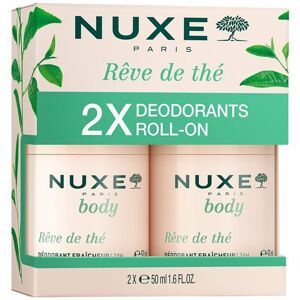 NUXE Duo Deodorant Fraîcheur 24h, Rêve de thé Dieses Duo enthält 2 Deodorant Fraîcheur 24h, Rêve de Thé (Teetraum) 50 ml Für einen effizienten 24h-Schutz⁽¹⁾ vor Geruchsbildung. Die flüssige Textur mit dem belebenden Grüntee-Duft zieht schnell und ohne Rückstande ein und hinterlässt auf der Haut ein Gefühl von Frische, während gleichzeitig weiße Deo-Spuren auf der Kleidung vermieden werden. Das Deo verleiht für 90%⁽²⁾ der Anwenderinnen ein Gefühl von Frische. In Frankreich formuliertes und hergestelltes Pflegeprodukt. Anwendung: Tragen Sie das Deodorant morgens nach dem Duschen auf die saubere und trockene Haut auf. Wiederholen Sie die Anwendung zu jeder Tageszeit, wenn Sie das Bedürfnis danach verspüren. Inhaltsstoffe: AQUA/WATER, TRIETHYL CITRATE, CELLULOSE, PENTYLENE GLYCOL, PARFUM/FRAGRANCE, GLYCERYL STEARATE CITRATE, CETYL ALCOHOL, POLYGLYCERYL-3 CAPRYLATE, PROPANEDIOL, HYDROXYACETOPHENONE, XANTHAN GUM, SODIUM GLUCONATE, ZINC GLUCONATE, ALLANTOIN, DEHYDROACETIC ACID, CITRIC ACID, GLYCERYL CAPRYLATE, GLYCERIN, LACTOCOCCUS FERMENT EXTRACT, CAMELLIA SINENSIS FLOWER EXTRACT, DECYL GLUCOSIDE, GERANIOL, CITRAL, ALPHA-ISOMETHYL IONONE, LIMONENE, LINALOOL. [N4505/A].