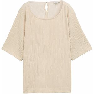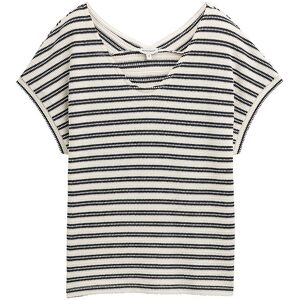 Damen T-Shirt aus Baumwoll-Viskose-Mischung V-Ausschnitt Überschnittener Kurzarm Ringelmuster Gerade Passform Farbbezeichnung: Offwhite Navy Structure Material: 70% Baumwolle, 20% Polyester, 10% Viskose