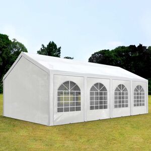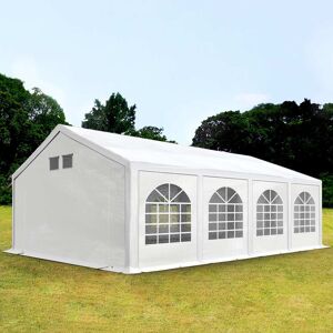 4x8m Partyzelt, PE-Plane, weiß: Damit Ihr Event zum unvergesslichen Erlebnis wird und nicht ins Wasser fällt, empfehlen wir Ihnen dieses praktische TOOLPORT FLEX-Partyzelt in weiß mit den Maßen 4x8m. Die Höhe misst 3,1 , während das Gewicht 180 g/m² beträgt. Das hochwertige Klicksystem, die kurze Auf- und Abbauzeit, die leichte und strapazierfähige Plane (100 % wasserfest) aus PE sowie das Gestänge aus vollverzinkten Stahlrohren sind nur eine Handvoll positiver Eigenschaften. Das Partyzelt mit kleinem Packmaß ist vor allem für den schnellen und spontanen Einsatz konzipiert. Benötigen Sie kurzfristig für den temporären Einsatz ein Partyzelt, sind Sie mit dem 4x8m großen TOOLPORT Partyzelt der Qualität FLEX bestens beraten. Das Partyzelt in der Farbe weiß eignet sich für unzählige Einsätze: von der Partylocation für einen Geburtstag, ein Jubiläum oder eine Gartenparty, bis hin zur Raumerweiterung oder Lagerfläche. Die Gesamtfläche dieses FLEX Partyzeltes beträgt ca. 32m². Soll dieses zukünftig für größere Events vergrößert werden, ist das kein Problem. Dank der modularen Bauweise des TOOLPORT Partyzeltes kann dieses jederzeit mit entsprechendem, zusätzlichem Zubehör erweitert werden. Besonders beliebt ist der Einsatz als Partylocation. Das FLEX Partyzelt lässt sich dank hochwertigem Klicksystems schnell und flexibel aufbauen. Das Gestänge aus Stahl ist von innen und außen vollverzinkt und somit optimal korrosionsgeschützt, robust und unempfindlich gegenüber Stößen, sowie Kratzern. Ein großer Vorteil gegenüber pulverbeschichteten Stahlrohren. Auch bietet der vollverzinkte Stahl kaum Angriffsfläche für Rost. Als Planen-Material kommt strapazierfähiges und reißfestes PE zum Einsatz. Speziell weist die Plane aus PE eine Reißkraft von 350 bzw. 180 g/m² pro 5cm Planenbreite auf. Dank verschweißter Nähte ist die Plane aus PE zu 100 % wasserdicht, sodass keine Party bei Regen buchstäblich ins Wasser fallen muss. Mit einem UV-Schutz von 30+ bietet dieses FLEX Partyzelt auch im Sommer einen hohen Schutz. Die durchgehende Dachplane aus einem Stück hält zudem die gesamte Konstruktion zusammen. Ein umlaufender Volant verdeckt Zwischenräume und stoppt Zugluft. Durch ihr geringes Gewicht lässt sich die Standard PE-Plane außerdem besonders leicht montieren, was sich auch beim Transport und der Lagerung als sehr praktisch erweist. Die Plane in der Farbe weiß ist zu 100 % recyclefähig. Die Seitenteile lassen sich schnell via Gummischlaufen am Gestänge montieren und sind mit großen Fenstern in Rundbogenoptik ausgestattet – perfekt, damit viel Tageslicht ins Zeltinnere gelangen kann. Die Seitenhöhe beträgt ca. 2,0 m. Apropos Aufbau: Dank des hochwertigen Klicksystems und der leichten PE-Plane lässt sich das TOOLPORT Partyzelt schnell auf- und abbauen – und das, komplett ohne zusätzliches Werkzeug oder Fachkenntnissen. Das FLEX Partyzelt eignet sich demzufolge perfekt, wenn Zeit ein wichtiger Faktor ist. Im Vergleich zu einer gemieteten Location, bietet ein Partyzelt...