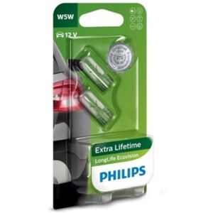 Art der Glühlampe: W5W. Hersteller: PHILIPS. Herstellernummer: 12961LLECOB2. Index: PHI 12961LLECO/B2. Lampentyp: Sekundär. Linie: Long Life EcoVision. Nennleistung [W]: 5. Spannung [V]: 12. Steckdosentyp: W2,1X9,5D. Stückzahl : 2. Verpackung: Blister.