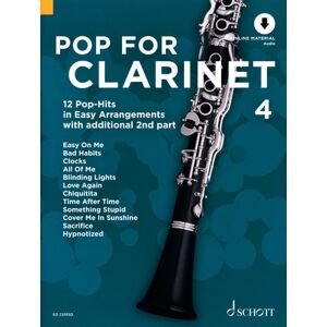 Schott Pop For Clarinet 4: 12 Pop-Hits arrangiert für 1 bis 2 Klarinetten, bearbeitet von Uwe Bye, mit Texten und Akkorden, leichter Schwierigkeitsgrad, ISBN 9783795726782, ISMN 9790001216081, ED 23593D, 23 x 30,5 cm, 32 Seiten, inkl. Download mit Demo-und Play-Along-Aufnahmen