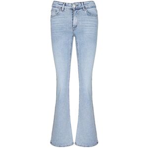 Damen Jeans aus elastischem Baumwolldenim Mid Waist Schließt mit klassischem Zip-Fly 5-Pocket Stil Extra dehnbares, high-performance Material Ausgestelltes Bein Anliegende Hüft- und Oberschenkelpartie Seitlich in der Innenbeinnaht geschlitzt Offener Saum Helle Waschungseffekte Farbbezeichnung: Black Denim Material: 93% Baumwolle, 5% Elastomultiester, 2% Elasthan