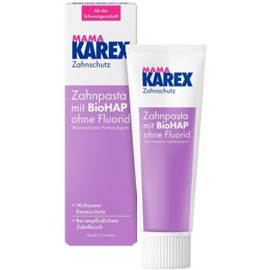 Anwendungsgebiet von Mama Karex ZahnpastaDie Mama Karex Zahnpasta wurde speziell für werdende und stillende Mütter entwickelt, um den besonderen Bedürfnissen in dieser Lebensphase gerecht zu werden. Während der Schwangerschaft kann es durch hormonelle Veränderungen zu empfindlichem Zahnfleisch und einem erhöhten Karies-Risiko kommen. Die Zahnpasta schützt effektiv vor Karies, stärkt den Zahnschmelz und schont zugleich das empfindliche Zahnfleisch – dank der innovativen BioHAP-Wirkformel und ganz ohne Fluorid.Sie minimiert Bakterienansammlungen, repariert mikroskopisch kleine Defekte im Zahnschmelz und reduziert Schmerzempfindlichkeit. Durch den Verzicht auf Fluorid wird das Risiko einer Überdosierung, die das Baby beeinflussen könnte, vermieden. Die Mama Karex Zahnpasta bietet so eine sichere und sanfte Zahnpflege ab der Schwangerschaft.Wirkungsweise von Mama Karex ZahnpastaDie Mama Karex Zahnpasta schützt und stärkt die Zähne werdender und stillender Mütter durch die innovative BioHAP-Wirkformel (biomimetisches Hydroxylapatit). Dieser Wirkstoff ähnelt dem natürlichen Zahnschmelz und legt sich wie eine Schutzschicht auf die Zähne. Dadurch werden mikroskopisch kleine Defekte im Zahnschmelz repariert und die Zähne remineralisiert. Gleichzeitig reduziert BioHAP das Anhaften von Bakterien, was das Karies-Risiko senkt und empfindliches Zahnfleisch schont.Durch den Verzicht auf Fluorid wird das Risiko einer Fluoridüberdosierung vermieden, was insbesondere für die Gesundheit des Babys von Bedeutung ist. Die Mama Karex Zahnpasta wirkt somit effektiv gegen Karies, schützt das Zahnfleisch und reduziert Schmerzempfindlichkeit – für eine sichere und schonende Zahnpflege während der Schwangerschaft und Stillzeit.Wirkstoffe / Inhaltsstoffe / ZutatenMama Karex Zahnpasta enthält:BioHAP minimiert die Bakterienansammlung, schützt undstärkt den Zahnschmelz und liefert so wirksamen KariesschutzGegenanzeigenBei bekannter Überempfindlichkeit gegenüber eine