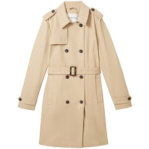 Modischer Damen Trenchcoat Kragen Langarm Schließt zweireihig mit Knopfleiste Seitliche Eingriffstaschen Inklusive Gürtel Gerade Passform Unifarben Farbbezeichnung: Sandy Beige Material: 100% Polyester