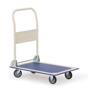 Stahlwagen mit Klappgriff und HDPE-Plattform große Plattform 720 x 480 mm mit einer Tragfähigkeit von 150 kg Der Rollstuhl ist mit 2 Lenkrollen drehbaren und 2 festen Rädern aus thermoplastischem Gummi mit einem Durchmesser von 100 mm ausgestattet aufgeklappte Maße: 170 x 480 x 720 mm ungefaltete Maße: 860 x 480 x 720 mm Eigenschaften: Tragfähigkeit (kg): 150, Griffhöhe (mm): 860, Regalbodenmaße B x L (mm): 480 x 720, Raddurchmesser (mm): 100, Gewicht (kg): 8, Anzahl Regalböden: 1, Maße H x B x L (mm): 860 x 480 x 720, Maß im zusammengelegten Zustand H x B x T (mm): 170 x 480 x 720, Radtyp: TRP - thermoplastisches Gummi, Grifftyp: klappbar