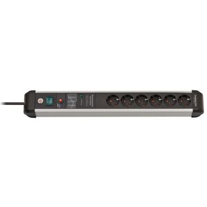Brennenstuhl Premium-Protect-Line; 6 Fach Schutzkontakt Steckdosenleiste mit 3m Kabellänge H05VV-F 3G1,5; dient dem Schutz Ihrer angeschlossenen Geräte vor Störungen im Stromnetz, wie Überspannungen, indirekte Blitzeinschläge oder Leitungsrauschen, mit einer maximalen Summe von Ableitströmen bis zu 60.000 A; hochwertiger Schutz vor HF-Störungen durch integrierten Filter; besonders stabiles, eloxiertes Aluminium-Gehäuse; Innovatives Befestigungskonzept; Sicherungsautomat: 16 A; Nennstrom: 16 A; Entstörfilter EMI/RFI; 6 Schutzkontakt Steckdosen in 45° Anordnung; Kabelbezeichnung: H05VV-F 3G1,5; Kabellänge: 3 m; Kabelqualität: PVC; Abmessungen LxBxH: 6,50 x 12 x 57 cm; Gewicht: 1,15 kg