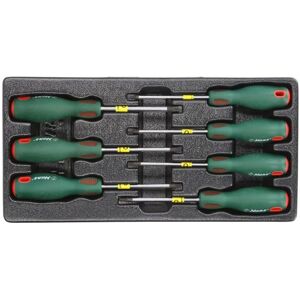 Anzahl Einsätze/Schubladen: 1+1+1 [3] / 1; G+F; type F. Anzahl der Werkzeuge: 7. Einsatztyp: Kunststoff. Einsätze Größe [mm]: 190x380. Hersteller: HANS. Herstellernummer: TT-17U. Index: TT-17U. Profil: TORX. TORX Größe: T10, T15, T20, T25, T27, T30, T40. Werkzeugtyp: Schraubendreher TORX.