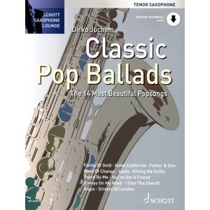 Schott Classic Pop Ballads Tenorsaxophon: 14 Pop-Songs arrangiert für Tenorsaxophon, arrangiert von Dirko Juchem, aus der Reihe "Schott Saxophon Lounge", mit Klavierbegleitung, mit Texten und Akkorden, mittlerer Schwierigkeitsgrad, ISBN 9783795718459, ISMN 9790001208390, ED 22057D, 23 x 30,5 cm, 84 Seiten, inkl. Download mit Demo- und Play-Along-Versionen