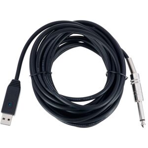 the t.bone USB 1G, Klinke-zu-USB Adapter, integrierter A/D Konverter, zum einfachen Anschluss von Gitarre/Bass an den Computer, 6.3 mm Monoklinken Stecker auf USB Stecker, Plug & Play, USB-Bus-Powered (kein Netzteil notwendig), 5 Meter Länge, Power-On-Light, Signal Boost Gain : 22dB, Auflösung: 16-Bit, SNR: 83.1 dB, für WIN98SE/2000/XP/VISTA 32-Bit/7/8, MAC OSX 10.5