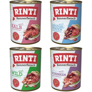 RINTI Kennerfleisch ist ein ausgewogenes Hundefutter, wie es der artgerechten Ernährung des Hundes entspricht. Der Hund ist von Natur aus ein Fleischfresser, sein Verdauungstrakt ist darauf abgestimmt. Sein ursprüngliches Beutefleisch beinhaltet neben Muskelfleisch auch Innereien wie Leber, Magen und Lunge sowie mineralstoffhaltige Fleischmaterialien. Für die Herstellung von RINTI Hundefutter wird das Fleisch bei niedrigen Temperaturen zubereitet und schonend behandelt, um möglichst viel von seiner Natürlichkeit zu erhalten. Deshalb schmeckt RINTI Hundefutter wie frisch gemacht. RINTI Kennerfleisch ist eine Fleischmahlzeit, die alles enthält was dein Hund für eine vollwertige Ernährung benötigt - in einer einzigartigen Kombination verschiedener Fleischsorten, mit Vitaminen und Mineralstoffen angereichert. Auf Getreide wird komplett verzichtet! Die Rezeptur punktet mit Omega-Fettsäuren, die normale Haut und glänzendes Fell unterstützen können. Ballaststoffe können zudem zu einer normalen Verdauung beitragen. Mit RINTI Kennerfleisch verwöhnst du deinen Vierbeiner mit einem Nassfutter für Kenner! RINTI Kennerfleisch Mixpaket 12 x 800 g im Überblick: Ausgewogenes Alleinfutter für ausgewachsene Hunde Ideal für ernährungssensible Hunde und Allergiker 70% Fleisch Innereien-Anteil: natürliche Fleischstückchen sorgen für fleischigen Geschmack, wertvolle Proteine liefern Energie Getreidefrei Rezeptur: auch für ernährungssensible Vierbeiner geeignet Rübenfaser: reich an Ballaststoffen, die eine normale Verdauung unterstützen können Flachsöl: reich an ungesättigten Omega-Fettsäuren, können zu normaler Haut und glänzendem Fell beitragen Vollwertig: mit Vitaminen und Mineralstoffen Ohne Getreide, Soja und Zucker Verzicht auf Formfleisch, Geschmacksverstärker, Fleischmehle und Farbstoffe RINTI Kennerfleisch Mixpaket I enthält folgende Sorten: 3 x Schinken 3 x Wild 3 x Geflügelherzen 3 x Kalb RINTI Kennerfleisch Mixpaket II beinhaltet folgende Sorten: 3 x Rind 3 x Pute 3 x Ente 3 x Rentier Wir empfehlen als praktische Ergänzung: Dosendeckel Praktische Dosendeckel aus Kunststoff zum Verschließen offener Dosen hält das Futter länger frisch leicht zu reinigen keine unangenehmen Gerüche im Raum