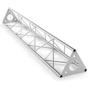 DECOTRUSS 3-Punkt Traversensystem: Bei DECOTRUSS handelt es sich um ein 3-Punkt Traversensystem aus Stahl, das über drei M10 Schrauben/Muttern verbunden wird. Der Vorteil dieser Schraubverbindung besteht darin, dass bei Verlust einzelner Verbinder schnell auf Baumarktware ausgewichen werden kann. Die drei Gurtrohre sind aus 15 mm Stahlrohr mit 1,5 mm Wandstärke gefertigt und eignen sich dadurch nur zu dekorativen Zwecken. Mit seinen minimalen Außenmaßen von 150 mm eignet sich DECOTRUSS ideal zum Gestalten von Design-Elementen im Dekorationsbereich von Privathäusern oder auf Messeständen, im Ladenbau, Diskotheken- und Theatereinrichtungen. Bei diesem Traversensystem handelt es sich um ein reines Dekorationssystem, das durch kompakte Maße, niedrigen Lageraufwand und einfachen Transport überzeugt. Bitte beachten Sie: Dieses Traversensystem darf niemals mit anderen Systemen kombiniert werden und es sind keine Verbinder im Lieferumfang enthalten!: Das dekorative Trussing: Leichte Montage, Die DECOTRUSS Elemente werden über die Verbindungsplatten mit drei M10 Schrauben verschraubt, Durch eine Vielzahl von Traversen und Ecken lassen sich phantasievolle Raumgebilde erstellen, DECOTRUSS eignet sich zum Gestalten von Design-Elementen im z. B. im Ladenbau, auf Messeständen, DECOTRUSS ist in silberner Lackierung erhältlich , DECOTRUSS Konstruktionen sind als Design-Element gedacht, Bitte beachten Sie die für Traversen-Konstruktionen geltenden gesetzlichen Richtlinien, Längsrohre:, 15 x 1,5 mm , Querverstrebungen:, 5 mm , Maße:, 1000 x 150 x 130 mm , Gewicht:, 2,30 kg