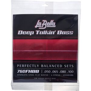La Bella 760FHBB Beatle Bass, Saitensatz für E-Bass, Stärke: Standard Tension, Mensur: Short Scale, Material (Wicklung): Stainless Steel, Wickulungsart: Flat Wound, Passend für die meisten Höfner "Beatle" Bässe und ähnliche Modelle, die 865 mm Abstand vom Ball-End bis zur Seidenwicklung benötigen, nicht geeignet für Bässe mit Brücken deren Saiten durch den Korpus geführt werden (Thru-Body), verpackt in modifizierter Atmosphäre um ein Anlaufen zu verhindern und frische zu erhalten, Saitenstärken: .050, .065, .080, .100, made in USA