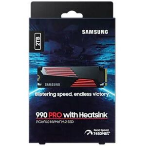 Samsung 990 Pro SSD M.2 1TB PCIe 4.0 KEY FEATURE - Bis zu 7450 MB/s Lese- und 6900 MB/s Schreibgeschwindigkeit - Samsung V-NAND mit hauseigenem Controller und DDR4-Cache - 55% bessere Zufallsleistung im Vergleich zur 980 PRO - Bis zu 1.550.000 IOPS zufällige Schreibleistung - Nickel-beschichteter Controller mit Smart Thermal Control - Verbesserte Energieeffizienz - bis zu 50% besser als die 980 PRO - Unterstützt AES 256-bit Verschlüsselung, TRIM und S.M.A.R.T - Magician Software für Überwachung, Updates und Optimierung - Kompatibel mit PCIe Gen4 Desktops, Laptops und Spielkonsolen Schlüssel-Spezifikation Details Kapazität 1TB Schnittstelle PCIe Gen 4.0 x4, NVMe 2.0 Formfaktor M.2 (2280) Sequentielle Lesegeschwindigkeit Bis zu 7450 MB/s Sequentielle Schreibgeschwindigkeit Bis zu 6900 MB/s Zufälliges Lesen (QD32) Bis zu 1.200.000 IOPS Zufälliges Schreiben (QD32) Bis zu 1.550.000 IOPS NAND-Typ Samsung V-NAND 3-Bit MLC Controller Samsung eigener Controller Cache 1GB stromsparender DDR4 SDRAM Leistungsaufnahme (Durchschnitt/Maximum) 5,4 W / 7,8 W (Burst) Leistung im Leerlauf Maximal 50 mW MTBF 1,5 Millionen Stunden Betriebstemperatur 0 - 70 °C Schockresistenz 1500G @ 0,5 ms (Halbsinus) Abmessungen 80 x 22 x 2,3 mm Gewicht Maximal 9 g Verschlüsselung AES 256-bit, TCG/Opal, IEEE1667 Software Samsung Zauberer Garantie Begrenzt (nicht explizit angegeben) Inhalt der Box - Samsung 990 Pro 1TB SSD